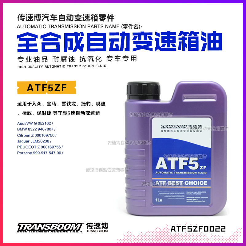 适用车型:适用于大众、宝马、雪铁龙、捷豹、奥迪、标致、保时捷 等车型5速自动变速箱油